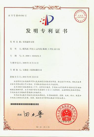 2010年7月21日,,,国家知识产权局授予365英国上市“幕墙旋转支架”发明专利权,,,并揭晓了“发明专利证书”。 。。。