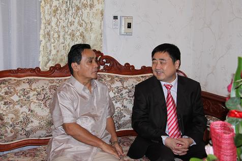 老挝国会主席通辛•坦马冯先生亲热会见胡运成董事长