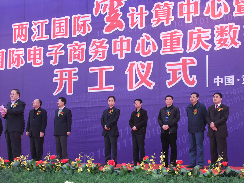 在4月6日的两江新区两江国际云盘算中心涤讪启动仪式上,,,,,,重庆市市长黄奇帆为两江国际云盘算中心授牌、市向导翁杰明、童小平加入开工仪式。。。。。集团公司董事长胡运成出席开工仪式并为重庆两江新区两江国际云盘算中心暨中国国际电子商务中心重庆数据工业园涤讪。。。。。随同胡运成董事长加入仪式的有集团公司副总司理王元曦、二建公司总司理费瑞林、海内公司总司理陈传文等。。。。。