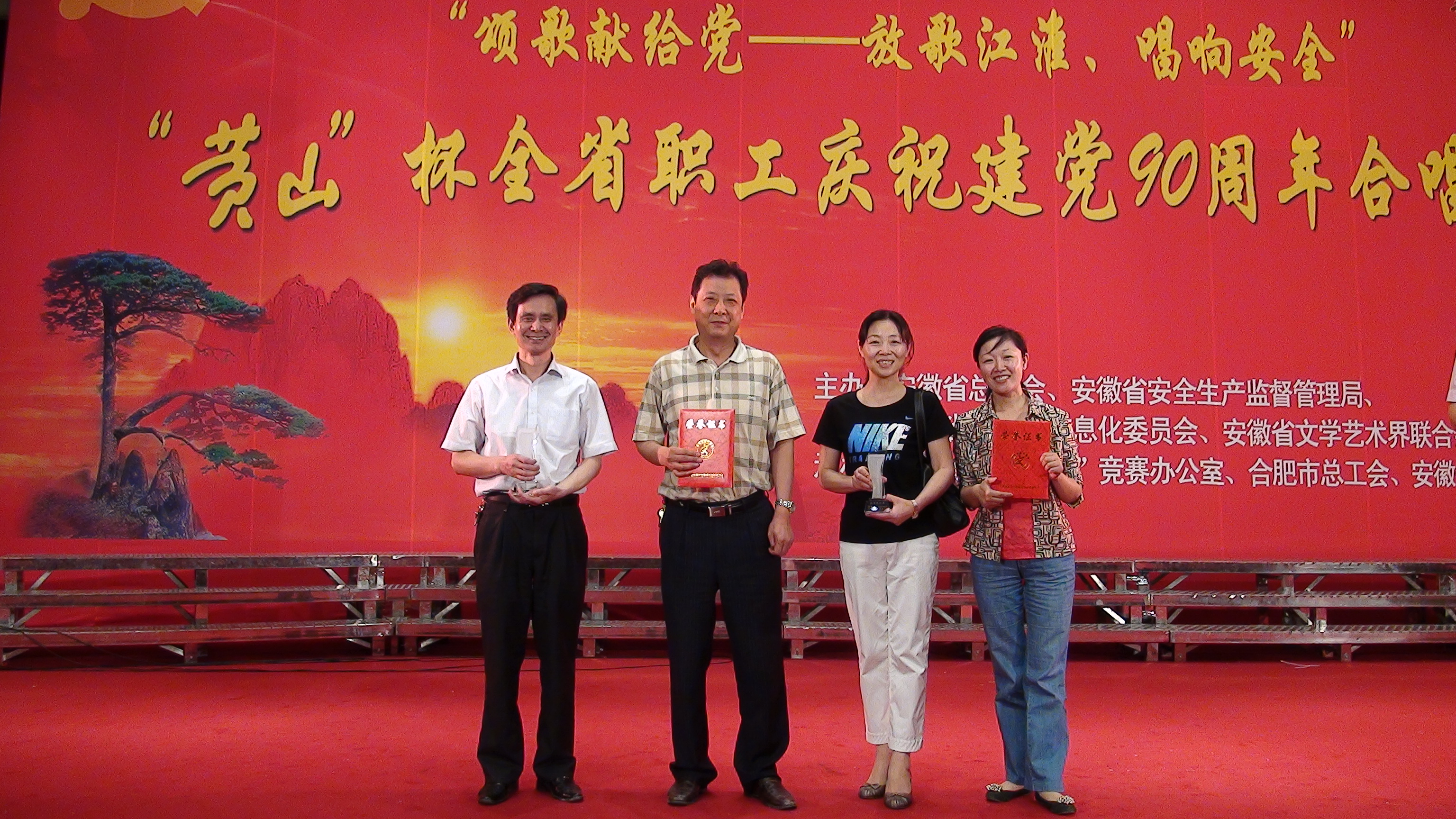 6月19日,,“黄山”杯全省职工庆祝建党90周年合唱展演在市政务中心大礼堂盛大举行。。。。。省委常委、省总工会主席王秀芳,,省政府副秘书长黄晓武,,省安监局局长程传如,,省总工会常务副主席李维勇、副主席夏育才,,市委副书记熊建辉以及省直有关部分认真人寓目演出并为获奖单位颁奖。。。。。