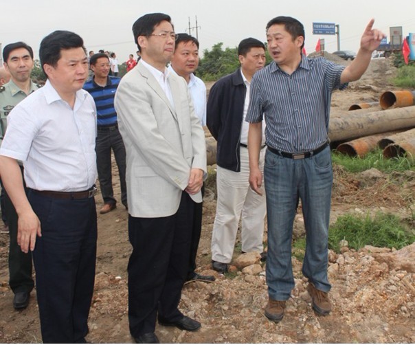 5月15日下昼,,,,,,马鞍山市委书记郑为文莅临安徽水利投资建设的205国道马鞍山段改建项目工地视察,市交通运输局党委书记、局长邵许,,,,,,安徽水利副总司理陈修翔以及当涂县人民政府相关向导陪同视察。。