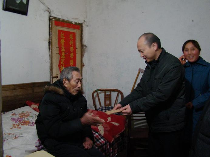 在省水建总公司离休老同志马相家,,,集团公司董事长、党委书记胡运成与87岁高龄的马老促膝谈心,,,详细询问他的身体、生涯和家庭情形,,,谢谢他为企业作出的孝顺,,,并送上新年的祝福 。。。。随后,,,胡董事长还划分慰问了3户难题职工和难题党员,,,每到一户都详细地询问他们的身体和生涯状态,,,向他们致以节日的问候,,,并送上慰问金 。。。。