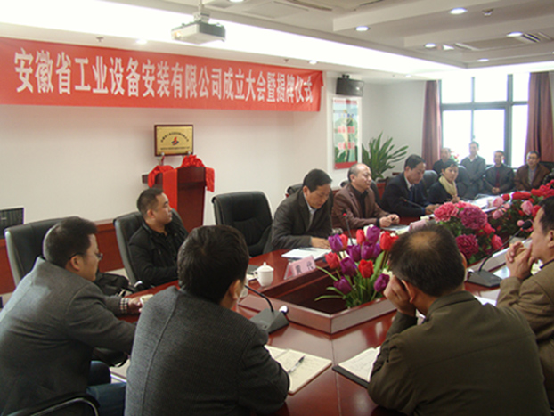11月19日上午,,安徽省工业装备装置有限公司建设大会暨揭牌仪式在公司十六楼大聚会室盛大举行。。。。。装置公司全体中层副职以上治理干部近五十人加入大会。。。。。集团公司董事长、党委书记赵时运,,副董事长、党委副书记李长斌,,纪委书记、工会主席牛曙东及相关部分认真人出席聚会。。。。。牛曙东书记主持聚会。。。。。