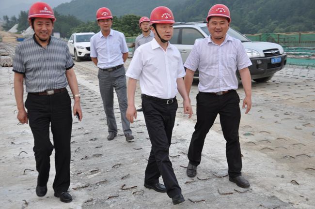 5月29日至30日,,,,,,集团董事长、党委书记赵时运一行在省路桥集团公司董事长、党委书记费瑞林等陪同下,,,,,,亲临省路桥集团承建的岳武高速公路安徽段09标调研。。