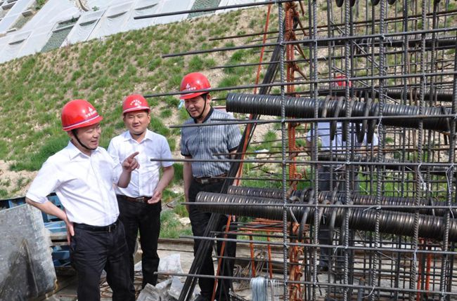 集团董事长、党委书记赵时运(中)踏勘工地现场