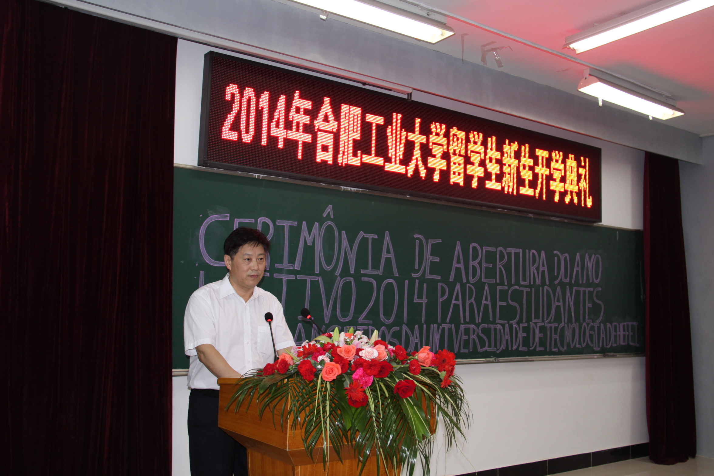 安哥拉扎伊尔省政府秘书长奎亚伦桂拉、合肥工业大学校长徐枞巍、安哥拉中国商会副会长陈永保先后在开学仪式上致辞。。。。。。留学生代表迪亚给恩达·哈优在仪式上作了讲话。。。。。。