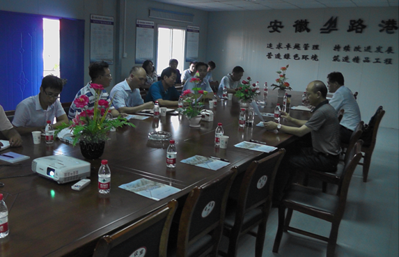 赵时运董事长一行一到项目部,,就冒着酷暑直奔现场、亲临一线,,详细询问了工程施工希望情形,,并重点审查了一线的清静质量等环节,,随后在项目部聚会室召开聚会。。。