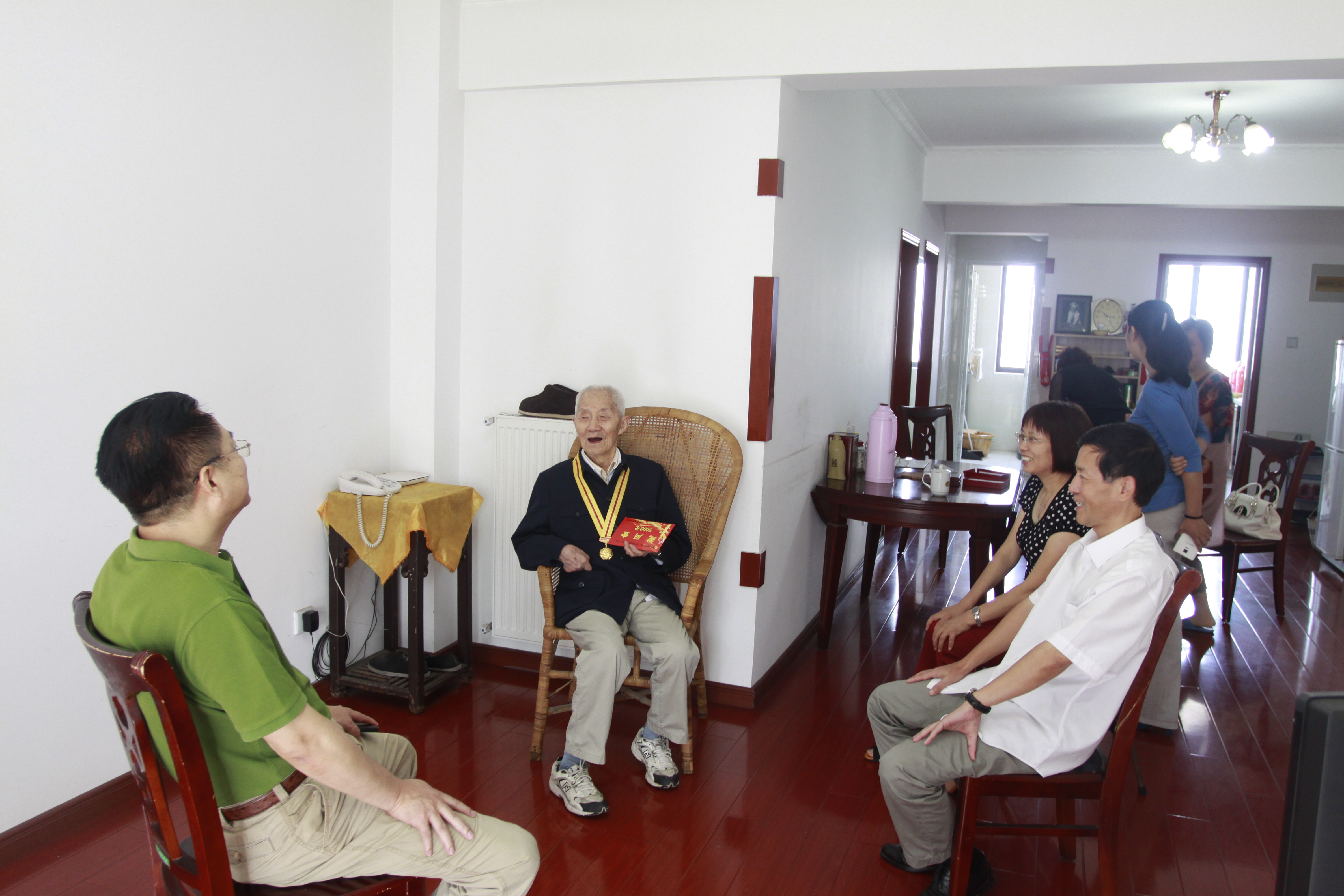日前,,,365英国上市党委书记、董事长赵时运,,,党委副书记、总司理刘家静代表集团公司全体员工,,,划分走访探望集团公司健在的抗日老战士、老同志代表施炳智、孙三川两位老同志,,,向他们转达了党和国家在抗日战争胜利70周年之际对老战士、老同志的体贴和慰问,,,并将抗日战争胜利70周年岁念章及5000元慰问金送到老同志手中。。。。。