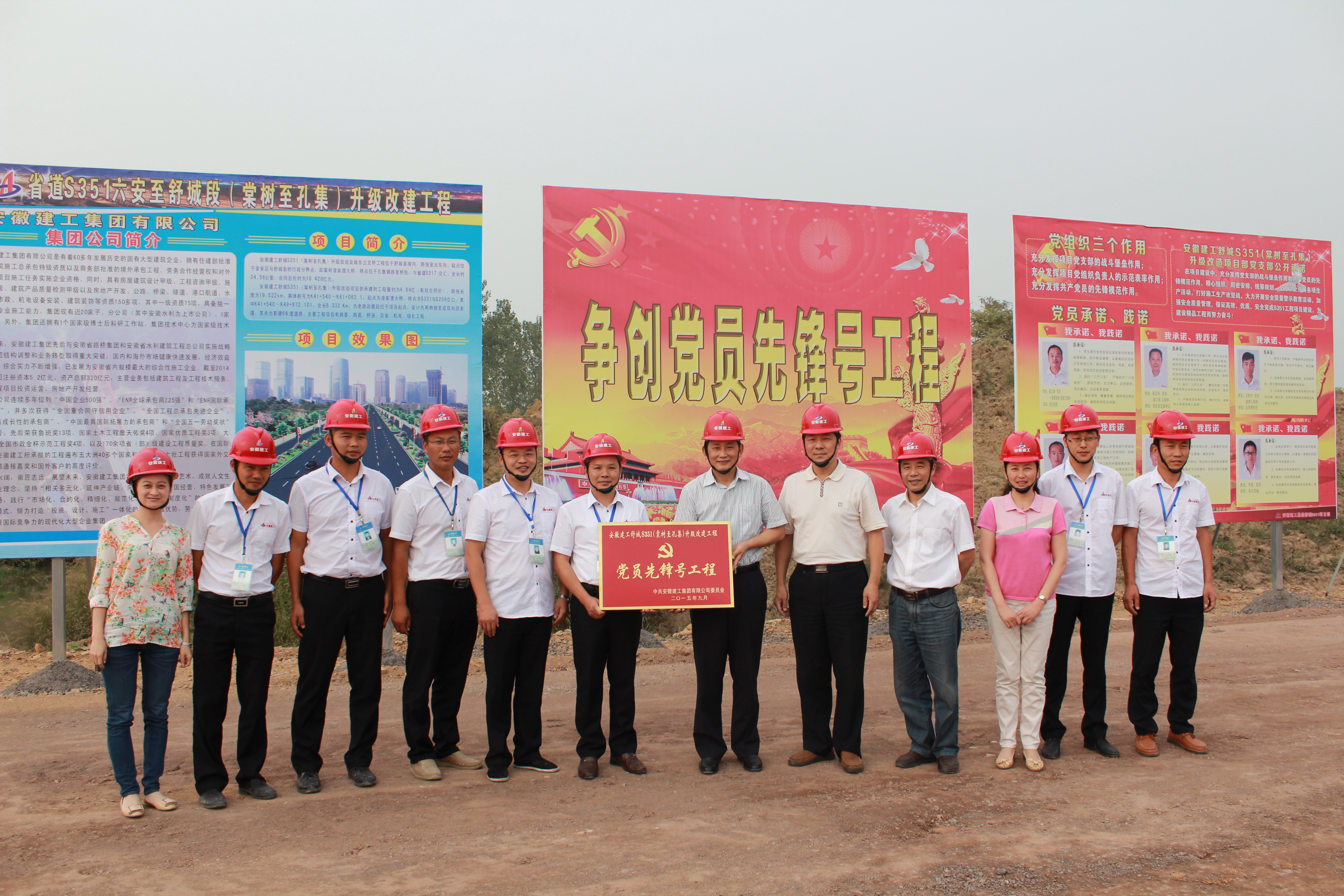9月18日上午,,,,,365英国上市在安徽路桥S351项目召开项目党365英国上市作现场观摩交流会。。。集团公司党委副书记牛曙东、工会主席徐晓光出席聚会并为该项目“党员先锋号工程”授牌。。。集团公司所属17个单位党委(总支)书记、党委事情部认真人及集团公司机关党群部分认真人等70余人加入交流会。。。集团公司党委事情部主任徐文联主持聚会。。。