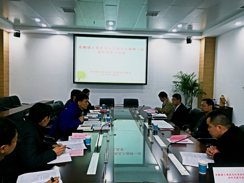 今年2月1日,,,,在集团副总工程师、信息治理部主任吴红星向导下,,,,招标中心、信息部和工管部等部分职员赴蚌埠市公共资源生意监视治理局,,,,考察、交流招标治理平台软件开发、治理。。就软件架构、招标营业、信息化手艺应用及市县共建统一资源平台等举行了深入交流、探讨。。