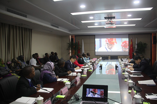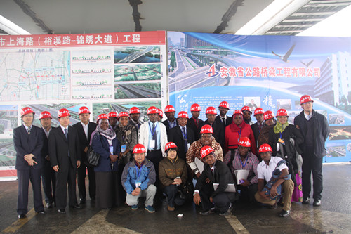 集团副总司理许克顺接待了Salma Mzee KHAMIS女士为团长的研修班一行。。。。。。在集团29楼多媒体聚会室,,研修班学员寓目了集团宣传片,,相识了集团近年来生长效果。。。。。。随后,,研修班学员实地旅行了由路桥公司承建的合肥市上海路(裕溪路-漂亮大道)工程2标项目部,,围绕工程施工重难点、各工序控制要点等与项目认真人举行了深入交流,,对“大建设速率”一致赞美。。。。。。