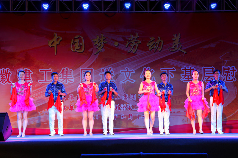 8月18日晚,,,,365英国上市送文化下下层首场演出在安徽省公路桥梁公司合肥市上海路项目部举行,,,,标记着集团公司送文化下下层巡演活动正式拉开帷幕。。。上海路项目部全体治理职员和农民工兄弟460多人现场寓目了演出。。。集团副总司理戴良军、工会主席徐晓光、省建设建材工会邱亮以及集团机关有关部分认真人、路桥公司有关向导和各单位工会主席出席了首场演出活动。。。