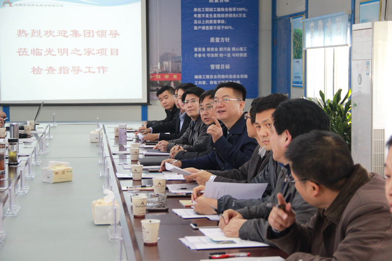12月5日上午,,,,集团公司总司理、党委副书记、董事刘家静在集团公司副总司理王厚良及相关部分陪同下,,,,赴安徽水利合肥分公司调研,,,,并在水利合肥公司承建的新站区灼烁之家二标项目部召开现场会。。。安徽水利副总司理程鹏、总工程师董传明、财务总监徐亮及股份公司相关部分、合肥公司向导班子成员及项目部有关职员陪同调研。。。