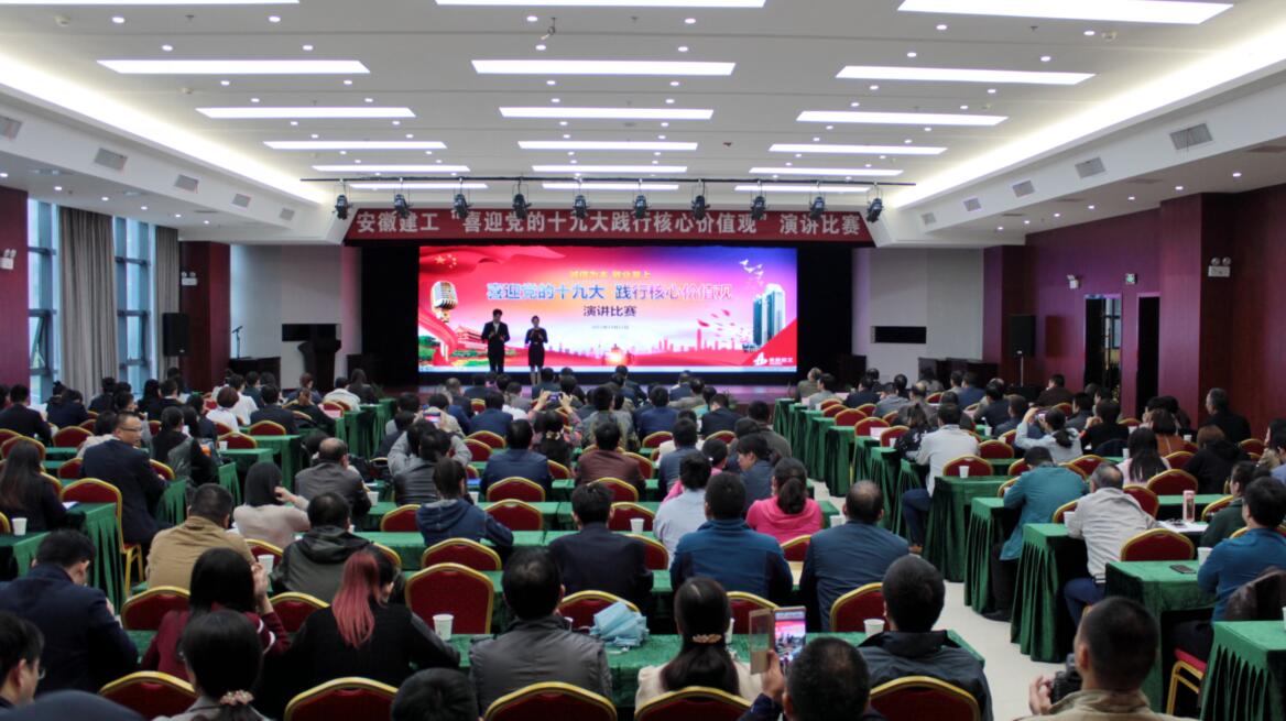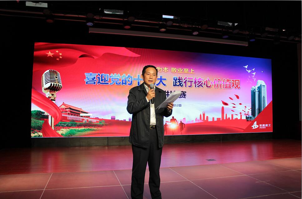 金秋时节 ,,,,,硕果盈枝。。10月12日下昼 ,,,,,集团公司“喜迎党的十九大  践行焦点价值观”主题演讲角逐决赛在安建大厦三楼聚会室盛大举行。。来自集团所属各单位 ,,,,,从预赛闯关而来的16名参赛选手睁开了一场精彩强烈的角逐 ,,,,,送上了一场精彩纷呈的视听盛宴。。