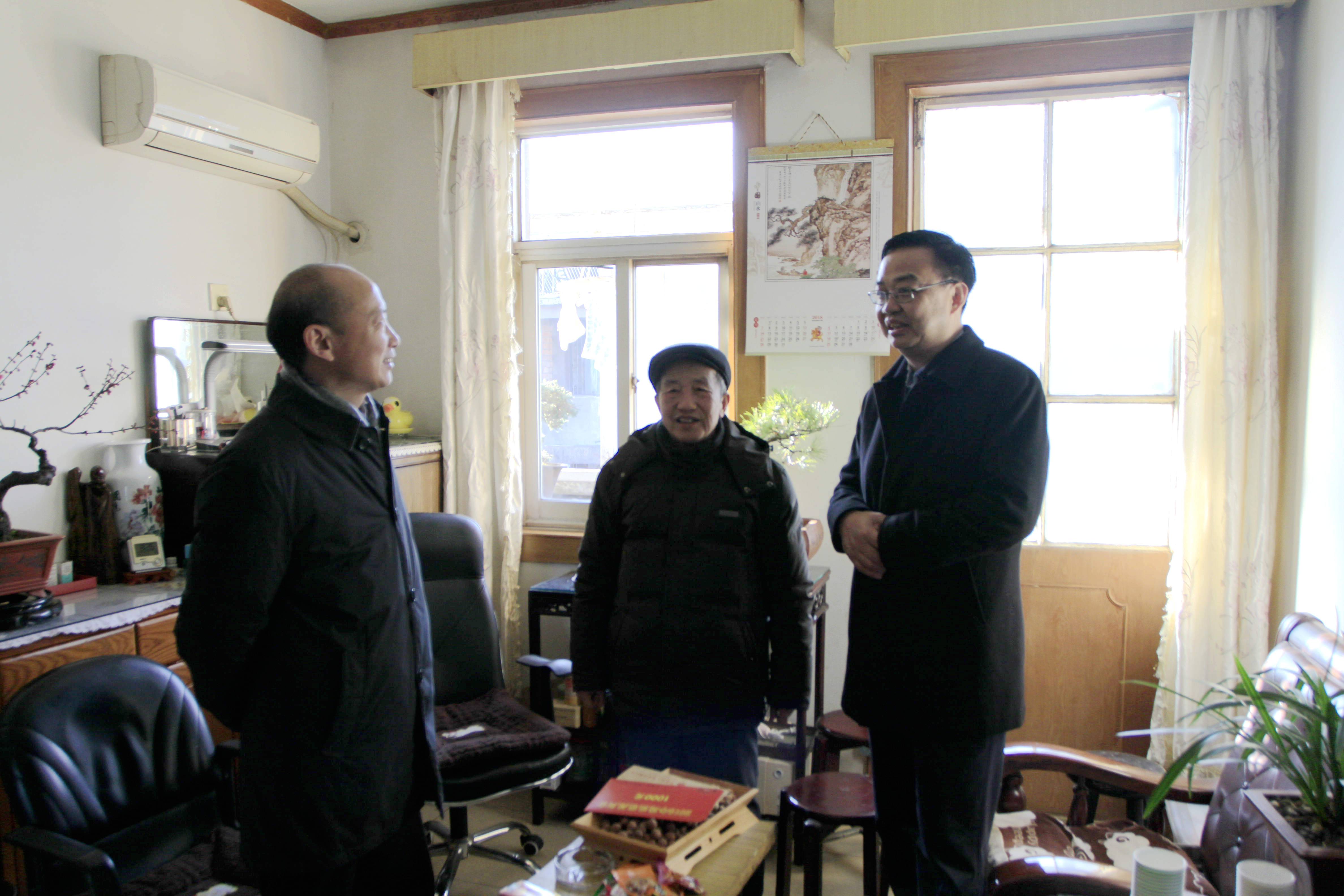 2月13日上午,,,安徽省国资委党委委员、副主任项小龙在集团公司党委书记、董事长赵时运,,,省国资委组织宣传随处长金进,,,集团工会主席徐晓光等人陪同下,,,亲热地探望老党员吴德超同志,,,并送去了慰问金和新春祝福 。。。。
