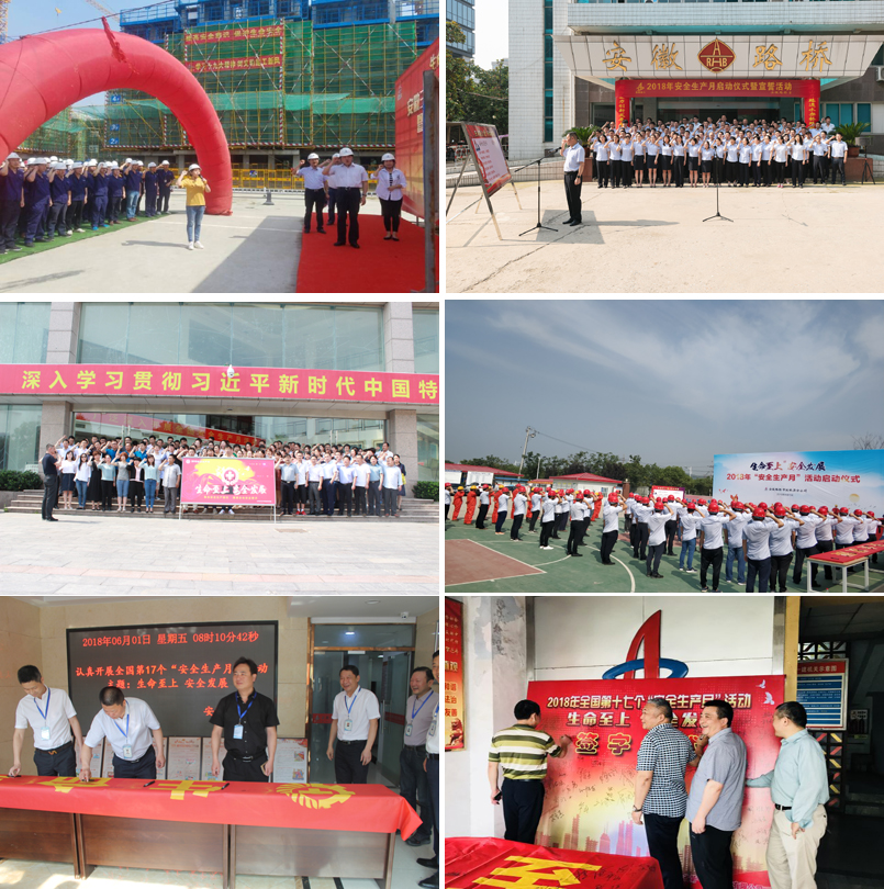 6月1日,,,,,,以清静宣誓、清静允许署名为主要形式的“清静生产月”活动启动仪式在所属各单位准期举行,,,,,,安徽一建、安徽二建、安徽三建、安徽水利、安徽路桥、安徽路港、安徽交航等单位主要认真人亲临现场并领誓、署名,,,,,,清静生产第一责任人的主体责恣意识进一步展现。。。。。。