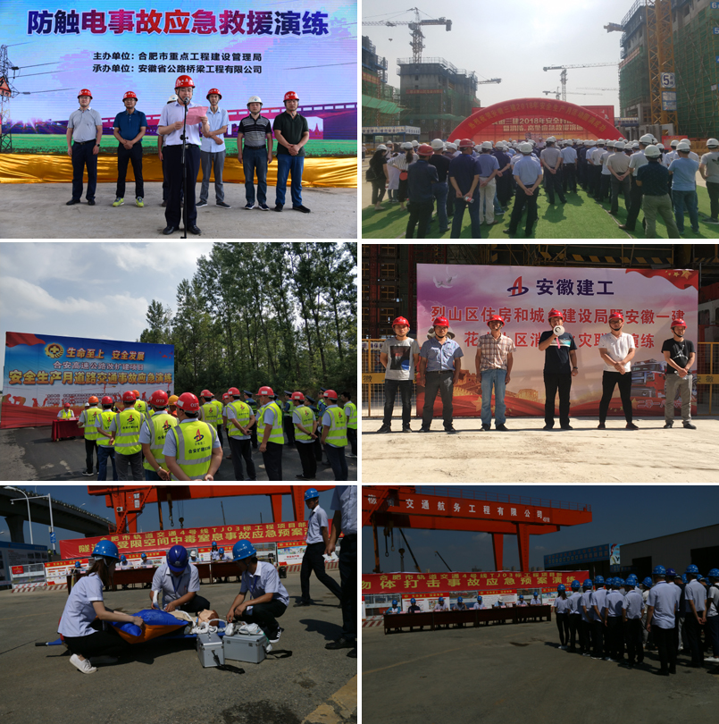 安徽水利、安徽路桥、安徽交航、安徽三建、安徽二建、安徽一建、路桥集团、安徽路港、安建建设、安建建材、安建投资等单位开展了应急预案、应急知识、自救互救、避险逃生方面的培训和消防、触电、高处坠落、防汛、水上救援、高温中暑、坍塌、地下密闭空间窒息等生产清静事故应急演练活动,,,,,,应急预案演练践行了“不爆发、控得住、治得了”的起劲防控理念,,,,,,“以练为战”提升了应急处理能力,,,,,,提高了应对事故、防灾避险、快速反映和协调作战能力。。。。。。