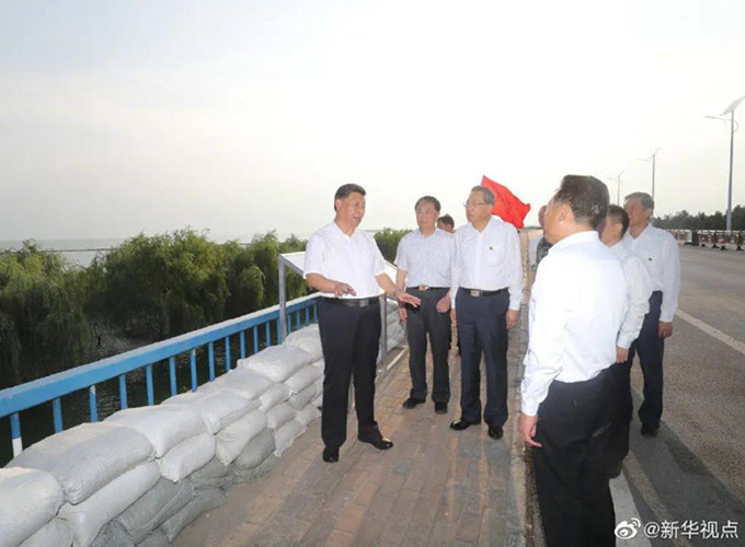 日下昼在安徽省合肥市考察调研。。。。他在肥东县十八联圩生态湿地蓄洪区巢湖大堤罗家疃段,,,,,,观察巢湖水势水情,,,,,,探望慰问防汛抗洪一线职员、先进典范代表和加入抗洪抢险的解放军、武警步队官兵。。。。当天下昼,,,,,,习近平在合肥还旅行了安徽立异馆和渡江战争纪念馆,,,,,,相识安徽省科技立异和新兴工业生长情形,,,,,,重温革命历史、思念革命先烈。。。。
