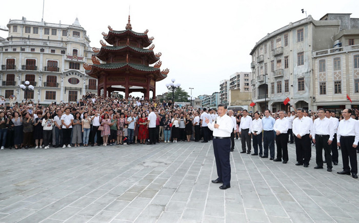 日下昼来到广东省汕头市小公园开埠区,,,,,走进开埠文化摆设馆、侨批文物馆,,,,,相识汕头开埠历史、设立经济特区以来的建设生长情形,,,,,和潮汕侨胞心系家国故土、支持祖国和家乡建设的历史。。。。。随后,,,,,习近平步行观察开埠区街区人文历史风貌,,,,,同市民群众亲热交流。。。。。