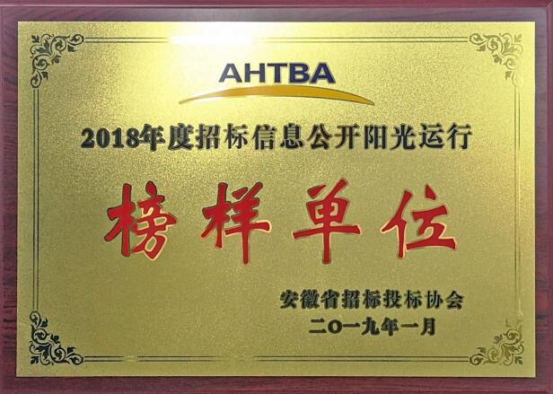 克日, ,安徽省招标投标协会第二届会员代表大会第三次聚会暨第二届理事第四次聚会在合肥顺遂召开, ,会上, ,集团公司被授予“2018年度招标信息果真阳光运行模范单位”声誉称呼。。。