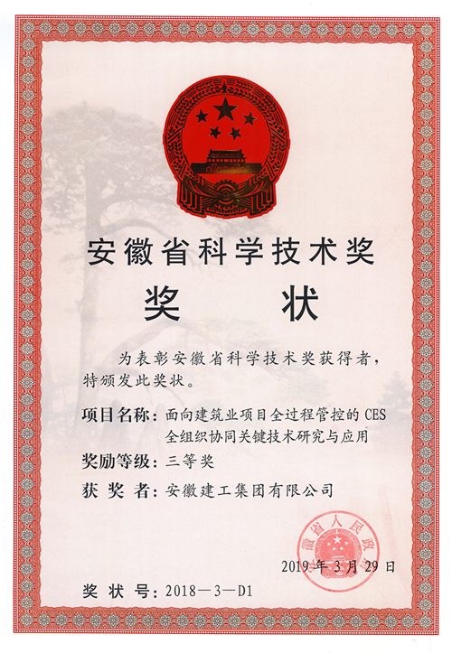 4月11日,,安徽省科学手艺奖励大会在合肥盛大召开,,省委书记李锦斌,,中科院院长白春礼,,省长李国英等出席大会,,集团公司主持申报的《面向修建业项目全历程管控的CES全组织协同要害手艺研究与应用》荣获安徽省科技前进奖三等奖,,这是集团公司信息化建设历程中首次获得的安徽省科学手艺奖。。。
