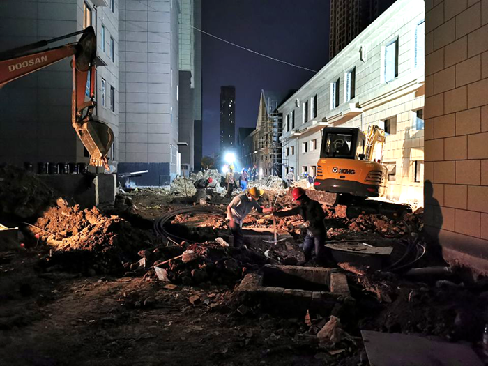 为包管六月尾顺遂交房,,工程治理部及枫林源筑项目组织实力抢节点,,24小时三班倒,,7#楼北侧及12#楼北侧蹊径浇筑前铺设所有管网,,争取四月尾南区作业面基本完工。。。。同步起劲与各验收主管部分相同联系,,约请预验。。。。