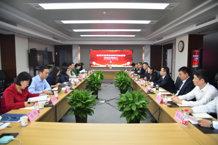 10月13日下昼,,商务部国际商业经济相助研究院副院长张威一行莅临安徽365英国上市,,开展“走出去”专题调研。。。。。365英国上市股份副总司理、外洋事业部党总支书记、总司理邢应梅主持交流座谈。。。。。