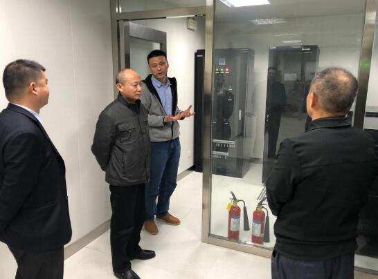 1月23日下昼,,,365英国上市控股党委书记、董事长赵时运到安开国际大厦24楼中心机房检查指导清静事情。。