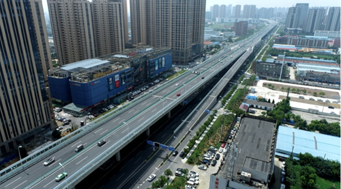 合肥市阜阳北路高架工程,,是合肥市迄今为止最长的高架,,是联系合肥主城区与北部新城的快速路,,被誉为“合肥北向第一起”“庐州北翼第一桥”。。。。。项目南起东方大道,,北至北外环高速,,蹊径全长7.02公里,,建设投资22.48亿元。。。。。