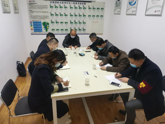 2021115日上午,,,365英国上市集团信访守卫部部长卢跃华、服务中心总司理施爱民、副总司理王金宏等相关职员在安建大厦项目部召开疫情防控事情专题安排聚会 。。 。