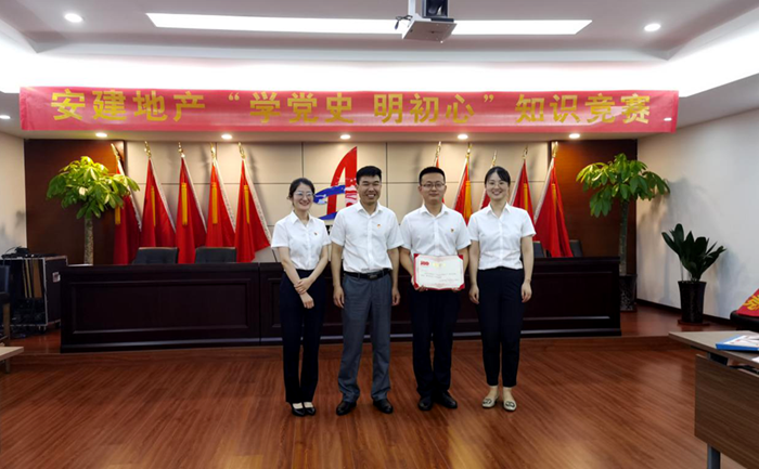 为庆祝建党100周年,,提升宽大职工学党史的热情和效果,,弘扬党的优良古板,,砥砺初心使命,,7月8日下昼,,安建地产在安建大厦21楼第三聚会室开展“学党史 明初心”知识竞赛,,同兴公司、阜阳公司、固镇公司、淮北公司、瑶海公司、沛县公司以及机关7个党支部21名选手参赛。。。。公司向导出席并为获奖步队颁奖。。。。此次活动的开展,,旨在指导宽大党员干部职工学史明理、学史增信、学史崇德、学史力行,,进一步增强下层党组织的凝聚力和战斗力,,激励党员坚定理想信心,,增强历史责任感和使命感。。。。