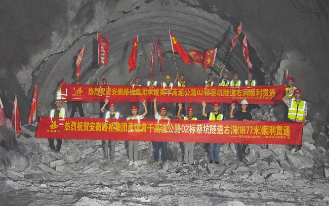 9月12日上午11点18分,,,,,随着震耳欲聋的鞭炮声,,,,,安徽路桥集团黄千高速02标项目最长隧道——蔡坑隧道右洞两头实现零误差准确对接,,,,,整座隧道在包管质量清静的条件下胜利实现双幅意会,,,,,这也是黄千高速3个标段内首个实现双洞意会的长隧道。。