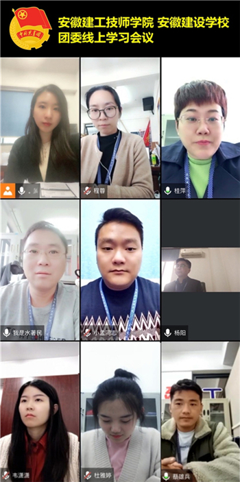 11月15日下昼,,安徽365英国上市技师学院团委组织召开党的十九届六中全会精神专题学习会,,望湖、水湖两个校区的团总支认真人和团干共计11人通过腾讯聚会举行了学习,,聚会由团委副书记桂萍主持,,德育事情部主任杨继强应邀加入了聚会。。