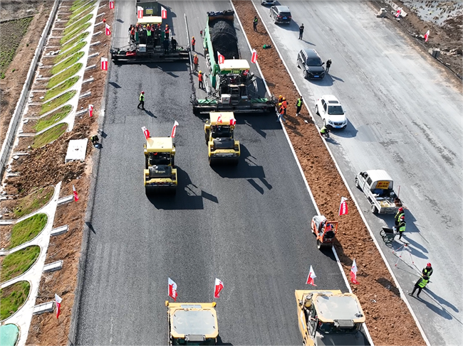 本次沥青下面层试验段的顺遂摊铺,,,为项目后续沥青下面层提供了可靠数据和名贵履历。。下一步,,,来六高速04标将使用晴晴天气,,,大干快上,,,加速项目建设进度,,,朝着通车目的迈进。。