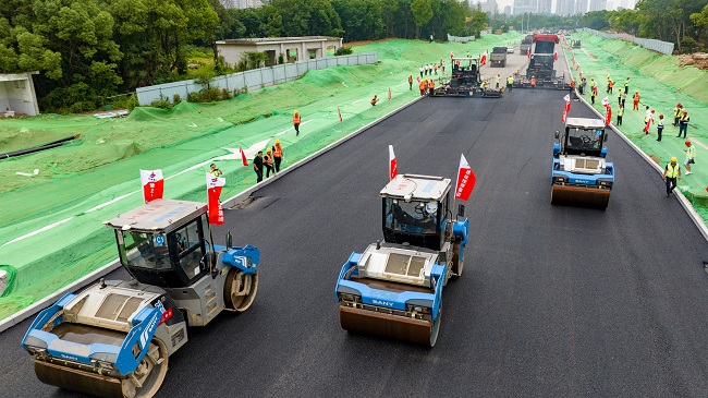 6月13日,,,,,,建设投资集团安建交建公司青海路项目沥青面层摊铺施工顺遂举行。。。。。本次施工引入无人摊铺手艺,,,,,,为安徽省内市政项目的首次应用。。。。。