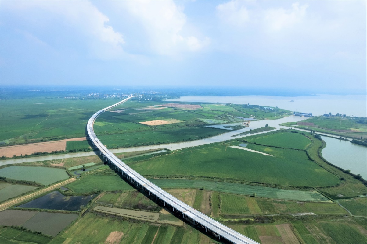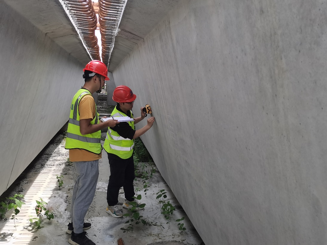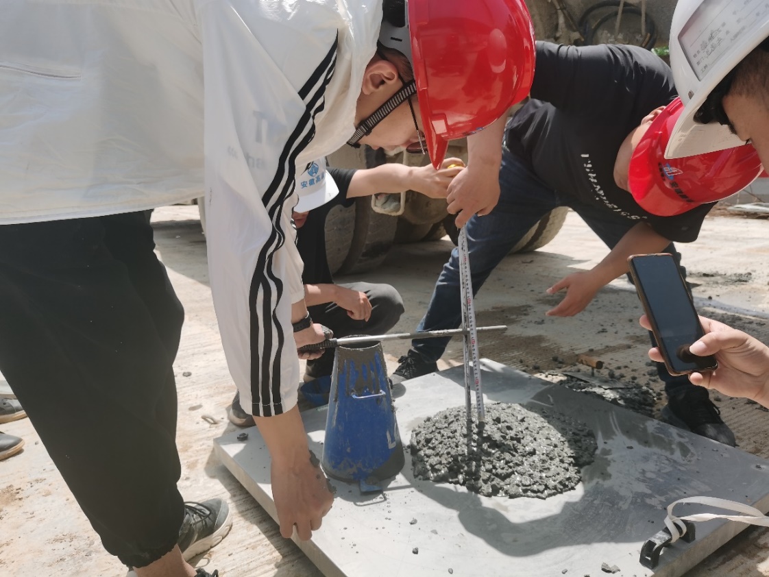 项目横跨整个蓄洪区,,,其中4048m长的汲河特大桥水下情形施工对混凝土性能要求更高。。。。。。面临概略积水下混凝土浇筑结构耐久性要求高等挑战,,,小组成员自动继续,,,重复比对标准试件和现场取样试件,,,通过调解粗集料级配、改良细集料细度模数等步伐,,,一直提高混凝土的事情性和结构耐久性。。。。。。