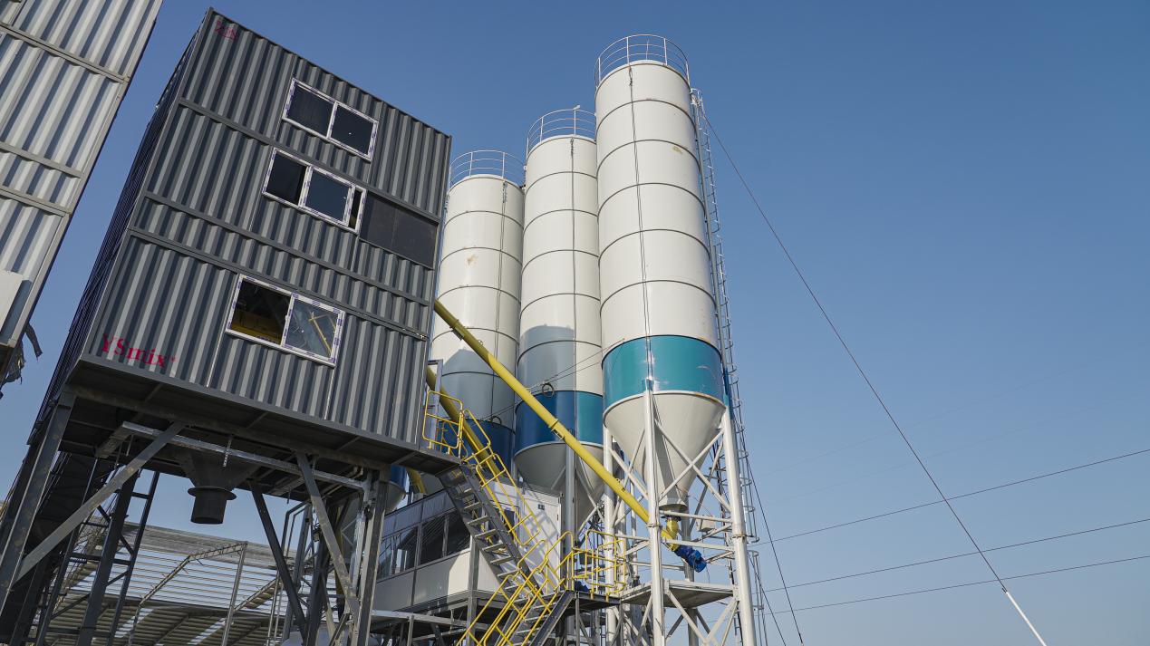 拌和站里,,,,机械的轰鸣声交相呼应。。。