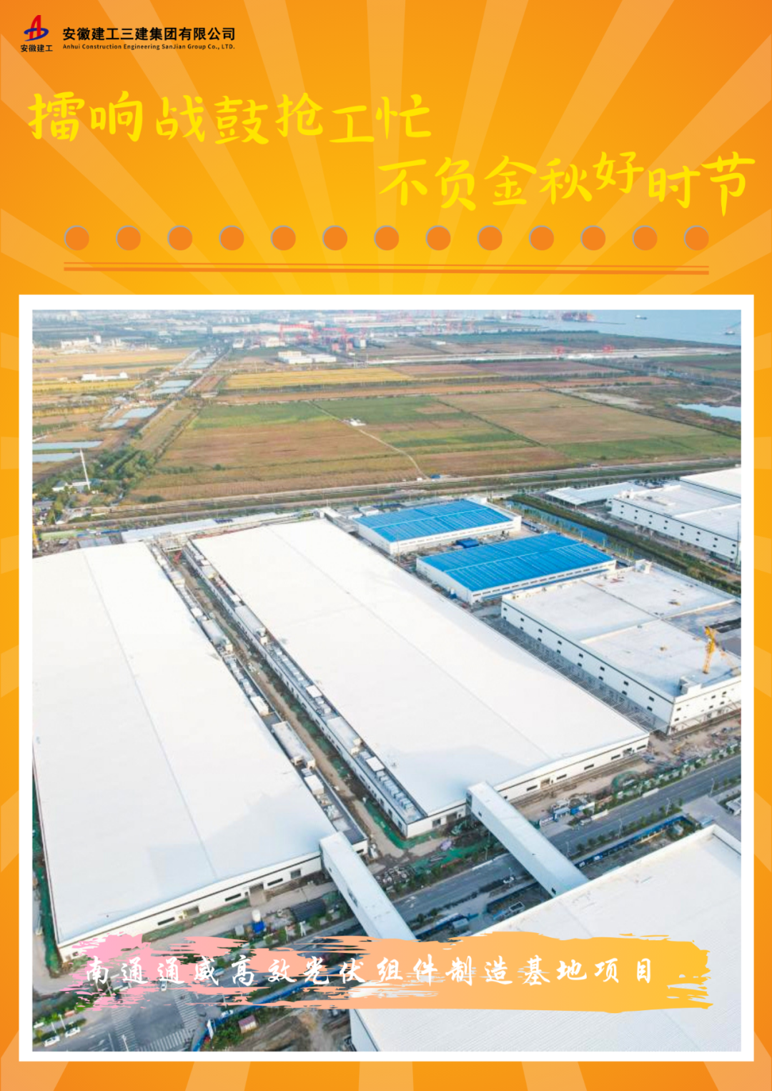 南通通威高效光伏组件制造基地项目共分为二个地块,,,总修建面积约31万平方米。。。深秋来临,,,一批“不打烊”的项目事情者、一线的工人们依旧坚守在自己的岗位上,,,加班加点促生产、忙建设,,,掀起大干热潮。。。现在,,,项目已完成所有单体的封顶,,,正在举行装饰装修施工。。。项目建成后,,,将提高江苏地区光伏工业生产产能,,,提升南通地区高新工业生长,,,为外地创立更多的就业岗位。。。