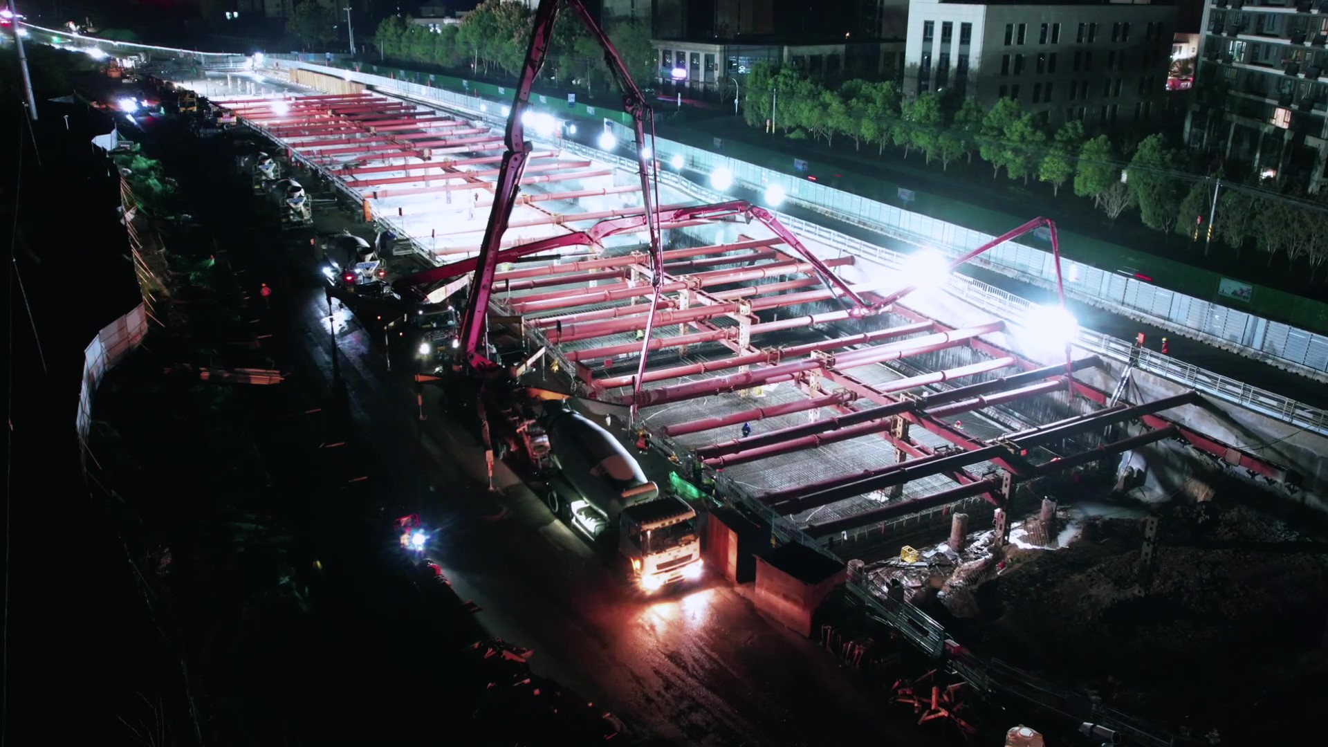 底板浇筑夜间施工