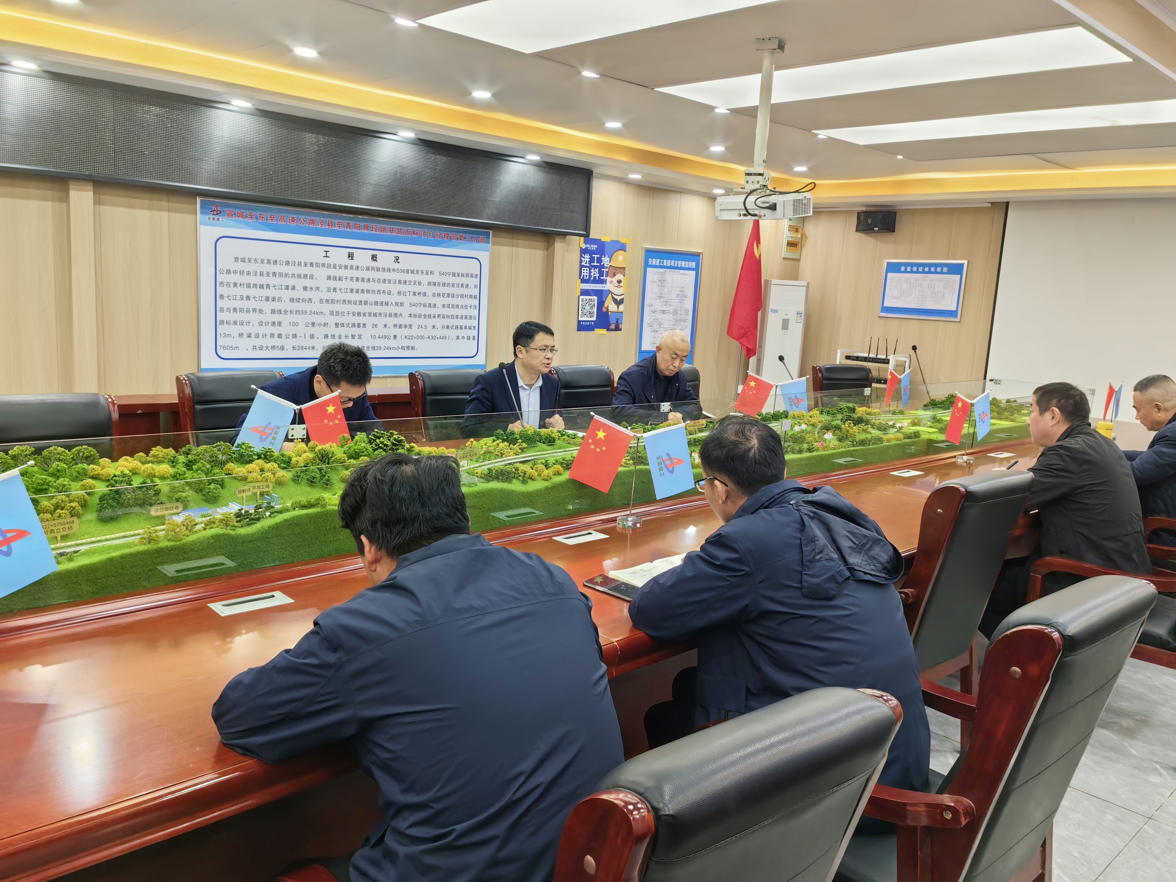 李建成一行前往施工现场听取项目部事情汇报,,,并通过聚会交流的形式,,,深入相识项目部目今施工历程及详细实验情形。。