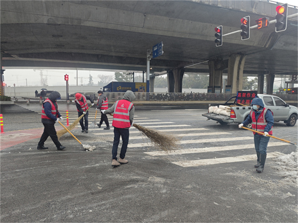 潜山路项目部全体员工以雪为令,,起劲响应招呼,,在业主、监理向导下对潜山路(望江西路-长江西路)全力开展除雪行动,,疏导交通、排查隐患、全力包管市民清静出行。。。。。。