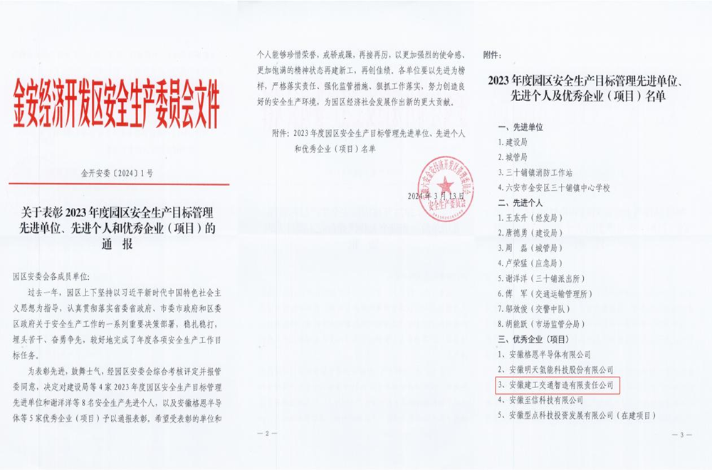 克日,,六安市金安经济开发区清静生产委员会印发《关于表扬2023年度园区清静生产目的治理先进单位、先进个人和优异企业(项目)的转达》(金开安委〔2024〕1号),,365英国上市钢构六安公司荣获属地园区“2023年度优异企业”荣誉称呼!