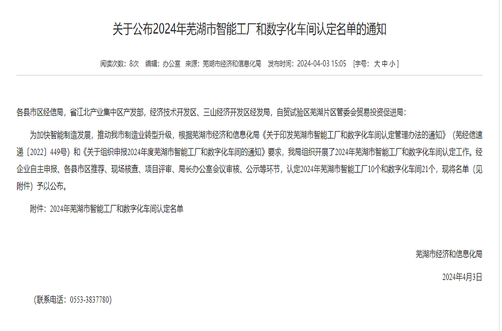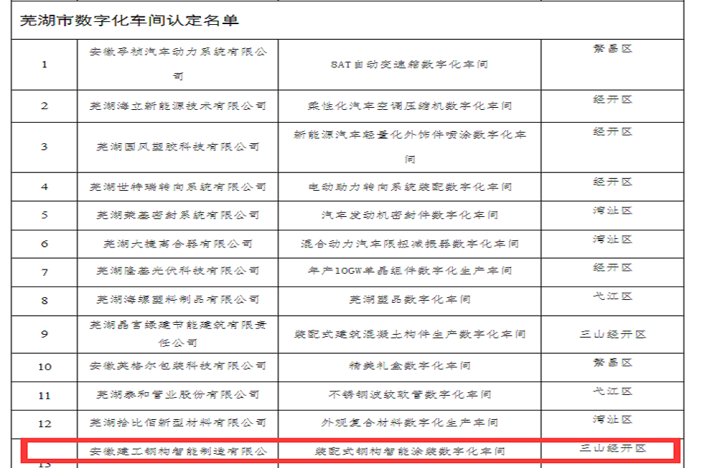 克日,,,,芜湖市经济和信息化局宣布了2024年芜湖市智能工厂和数字化车间认命名单,,,,365英国上市钢构芜湖公司榜上著名。。。。。