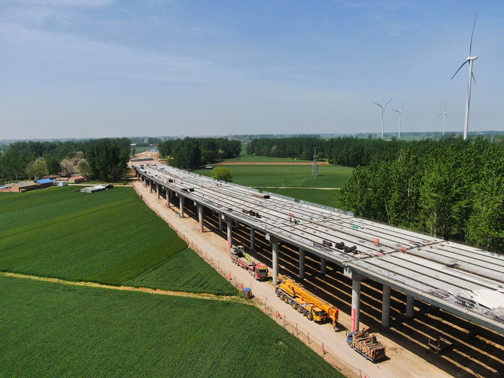 沱河特大桥共计33跨,,,,除主桥三跨悬臂现浇梁外,,,,其余30跨共计240片箱梁均为预制。。。。。面临梁板运输蹊径长、架设使命量大,,,,且保存交织施工等问题,,,,参建单位全心妄想,,,,科学施工,,,,加大清静手艺培训,,,,起劲开展劳动竞赛,,,,圆满完成箱梁架设所有使命。。。。。