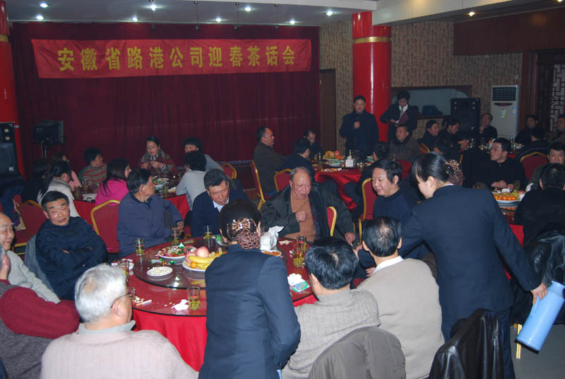 省路港公司2009年迎新春茶话会于元月21日下昼在隆岗大旅馆三楼大厅举行。。集团公司向导和公司党政向导班子成员、离退休老同志和机关全体员工欢聚一堂, ,,会场上春意融融, ,,充满了欢喜祥和的气氛。。各人纷纷回首已往, ,,泛论生长, ,,共叙友谊。。
