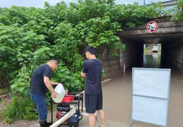 连霍高速下穿路段由于阵势较低,,,,,,积水严重,,,,,,已对过往车辆通行造成严重影响。。。。。。面临这一紧迫情形,,,,,,项目部迅速响应,,,,,,对遇险路段举行封堵,,,,,,组织职员装置水泵,,,,,,铺设水管,,,,,,争分夺秒举行排水事情,,,,,,并安排专人举行24小时值班,,,,,,项目班子成员带动冲锋,,,,,,充分验展“两个模范”作用,,,,,,为外地村民的清静出行保驾护航。。。。。。
