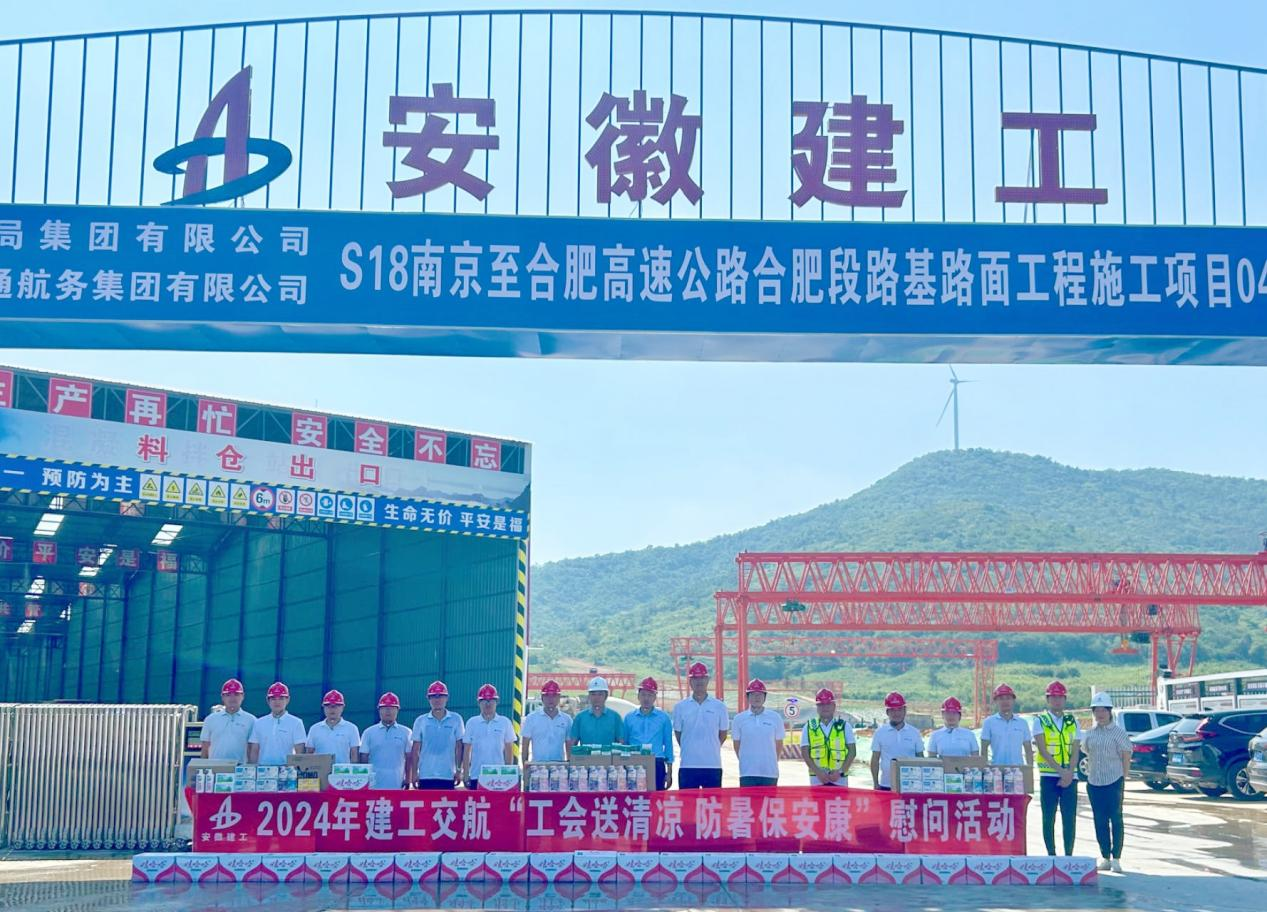 8月4日上午,,,,公司党委副书记、总司理李登祥赴S18宁合高速4标项目开展“工会送清凉、防暑保安康”慰问活动,,,,为高温天气仍奋战在一线的宽大干部职工送去清凉与眷注。。。。