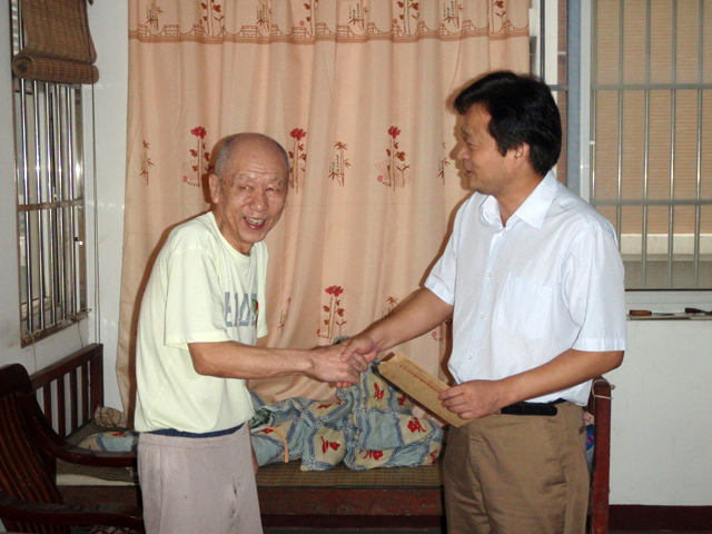 “八·一”建军节来临之际,,,,,安徽建机公司党委书记王爱国于7月30日上午,,,,,率守卫部主任蒋少凯等一行4人上门对该公司原退休职工——生涯难题的退役武士家中体现节日的问侯,,,,,并向他们送去了慰问金。。。。王爱国书记特殊体贴他们的身体康健和生涯情形,,,,,还与生涯难题的老病号、抗美援朝老战士蔡春华同志、军转干部过常武同志亲热攀谈,,,,,表达企业对他们的眷注之情。。。。