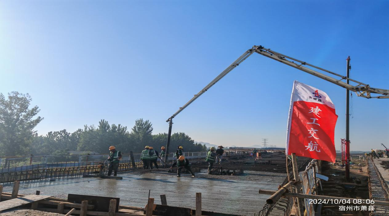 克日,,,经由 10小时的一连奋战,,,徐淮阜高速宿州段路基02标项目孙圩子互通C匝道桥最后一联现浇顶板浇筑完成。。。。这标记着孙圩子互通区所有现浇梁所有圆满浇筑完成,,,项目周全进入快速收尾阶段,,,为实现早日通车目的打下了坚实基础。。。。
