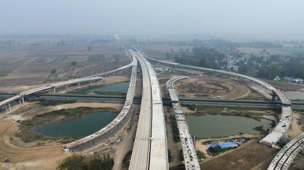 10月17日,,,,,随着最后一片77米长的钢箱梁徐徐落到指定位置,,,,,徐淮阜高速宿州段路基工程02标项目孙圩子互通6座上跨连霍高速钢箱梁顺遂完成顶推架设,,,,,标记着徐淮阜高速项目要害节点工程再次取得重大突破。。。